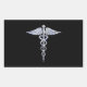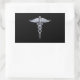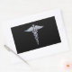 Pegatina Rectangular Símbolo médico de Caduceus sobre negro
