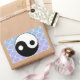 Un símbolo yin yang sencillo y elegante, en negro profundo, sobre un fondo de olas estilizadas, en tonos azules y violetas. El símbolo del yinyang simboliza el taoísmo, el equilibrio, la armonía. Disponible en pegatinas de 7 formas, redondeadas, ovaladas, con forma de estrella, cuadradas y más. De Scarebaby Design, respaldado por la garantía Zazzle.