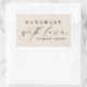 Pegatina Rectangular Simple Handmade with Love Script Business | Ecru
