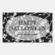 Esqueletos sobre un fondo negro y HAPPY HALLOWEEN en letras divertidas, estos pegatinas personalizados rectangulares son divertidos por tu fiesta de Halloween y para hacer favores de fiesta. COINCIDIENDO elementos de nuestra colección.