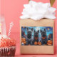 Descanse el espíritu espeluznante con este inquietante diseño de Halloween que presenta una manada de perros bajo un cielo oscuro, iluminado por la luna, rodeados de bates voladores y calabazas brillantes. Perfecto para los amantes de la diversión con sus peludos amigos.