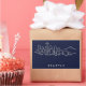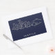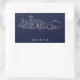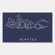 Este diseño presenta un bosquejo dibujado a mano del perfil de Seattle sobre un fondo azul oscuro.