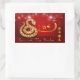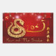 Linternas chinas con fuegos artificiales como fondo para el papel dorado cortado de una serpiente + gran dorado 2025 (escritura original a mano), dorado "Año de la Serpiente", saludando "Feliz Nueva Lágrima" en chino. Diseño en pegatina rectangular horizontal con fondo rojo oscuro. Tarjeta de felicitación coincidente, postal de vacaciones, invitaciones y más... Perfecto para un alegre Año Nuevo Chino de la Serpiente 2025.