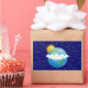 Este diseño presenta la Tierra como debería verse desde el espacio. La tierra es un hermoso verde y los océanos un azul profundo. Las nubes alrededor del ecuador son blanquecinas y esponjosas. Una tierra limpia. El sol es un amarillo dorado con los rayos brillantes. En los cielos brillan las estrellas, con un diseño de diferentes estilos y tamaños.