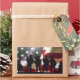 Patriotismo y Orgullo Militar. Soldados uniformados y cascos de combate en silueta negra con armas posan contra las Estrellas y Rayas de la Bandera Estadounidense. Diseño militar en rojo, blanco y azul con figuras del ejército negro.