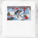 Pegatina Rectangular Springer Spaniel corriendo Nieve con Gorra de Navi