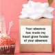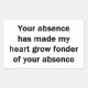 Por el amante del sarcasmo en todos nosotros. Echa un vistazo a este ingenioso diseño "Tu ausencia ha hecho que mi corazón se sienta más aficionado a Tu ausencia" en ropa, tazas, ratones, botones y otros regalos únicos.