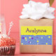 Pegatina Rectangular Su nombre con puntos amarillos y morados