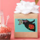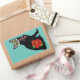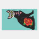 Un gato negro con el día del cráneo de azúcar muerto maquillada en un fondo de verde azulado