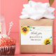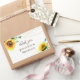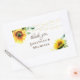 Boda rústico Gracias Pegatina retrata flores de color acuático amarillo girasol y vegetación con luces de cuerda.