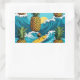 Pegatina Rectangular Surfista de piña: Aventura tropical de verano