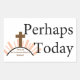 Este diseño dice "Quizás hoy" en letras grandes. Debajo de una colina con una cruz encima, en letras más pequeñas, el diseño dice "Jesús regresa pronto".