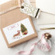 Desee unas vacaciones divertidas e incluso un año nuevo más divertido con este regalo de Navidades con temas caninos. Un dachshund tostado está parado al lado de un árbol de Navidad con huellas de pata lodosa debajo del perro.