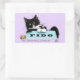 Pegatina Rectangular Tazón de perro gatito de Tuxedo