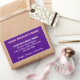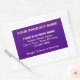 Los diseños de textos simples y simples a menudo son fáciles de entender y recordar. pegatina de personalizable que puede utilizar como accesorio de sus materiales de embalaje de producto. Sólo contiene información mínima. Es apropiado para productos que no requieran mucha información en su etiqueta. Los contenidos son el nombre del producto, el nombre de la empresa o del negocio, la dirección, el número de teléfono y el contenido de la red del producto. Los diseños son textos simples de color rosa y blanco sobre fondo morado y forma rectangular. Compruebe la apariencia después de escribir textos. Si la apariencia le resulta agradable, puede realizar su pedido ahora. Si necesita cambiar el tamaño y mover los textos para que encajen en este pegatina, cambie la herramienta de diseño. También puede realizar otros cambios según la apariencia que prefiera en la herramienta de diseño, como cambiar el color de fondo, el color de la fuente y el estilo de fuente.