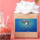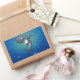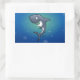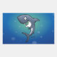 Pegatina Rectangular Tiburón gracioso sonriente con fondo azul