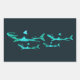 Este diseño honesto y minimalista retrata una escuela de tiburones de un hermoso color azul y cian texturado.