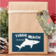 La playa de Tiger Beach en la isla de Grand Bahama (Bahamas) es un lugar ideal para nadar con tiburones. Diseño gráfico y de texto sobre Pegatina rectangular para amantes de los tiburones.