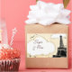 Torre Eiffel en negro con nubes esponjosas blancas, pájaros y remolinos. Cambia fácilmente los nombres en este diseño. Los pegatinas harán grandes favores / decoraciones para un París francés o un fiesta con la temática de la torre effel.