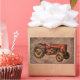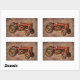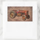 Pegatina Rectangular Tractor rojo antiguo