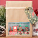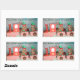 Estos pegatinas cuentan con recuperadores dorados vestidos de elfos en un tren de Navidades lleno de regalos. El texto dice: "¡A toda velocidad frente a los Navidades!".
