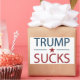 Este pegatina anti Trump se compone de un diseño de texto colorido y simple que está diseñado después de un diseño de pancartas con eslogan de campaña.
