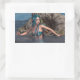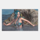 Sirenita ultramarina con pelo azul en un fantástico océano y un fondo costero