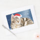 Pegatina Rectangular Un gato lindo vestido con Navidades de sombrero ro