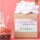 Una pegatina brillante con una cita sobre el matrimonio que dice "Para que un matrimonio sea exitoso es necesario enamorarse muchas veces de la misma persona". La cita está en una fuente personalizado de color negro encima de los colores rosados, grises y verde azulados manchados con formas de flores rosadas en las esquinas.