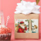 Ilustración vintage de diseño navideño victoriano que presenta a un Papá Noel antiguo en un teléfono de cuerda antiguo con una joven.
