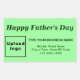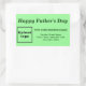 ¡Feliz Día del Padre! Fiesta para celebrar la paternidad. Rectangle forma pegatina con Feliz Día del Padre, su nombre comercial y otra información de su negocio. Puede utilizarlo como accesorio de su material de embalaje de producto para promocionar su marca de producto. También puede utilizarlo como material de marketing para promocionar su negocio a clientes o clientes. pegatina de personalizable que puede utilizar para crear conciencia de marca. Los colores de diseño son textos de color verde oscuro sobre fondo verde claro. Para personalizar de este pegatina, cargue el logotipo de su empresa, escriba su nombre de negocio, dirección y número de teléfono. Después de subir el logotipo y escribir textos, por favor compruebe la apariencia. Si la apariencia le resulta agradable, puede realizar su pedido ahora. Si necesita cambiar el tamaño y mover el logotipo y los textos para que encajen en este pegatina, cambie la herramienta de diseño. También puede realizar otros cambios en la herramienta de diseño según la apariencia de este pegatina que prefiera, como cambiar el color de fondo, el color del tipo de letra y el estilo del tipo de letra. ¡Feliz Día del Padre! Te deseo más ventas esta fiesta.