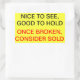 Es agradable ver, bueno aguantar. Una vez roto, Considere vendido.