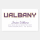 La marca de palabras de la Universidad de Albany presenta tipografía audaz y geométrica en púrpura con contornos de oro. El texto está escrito en todas las letras mayúsculas, formando un estilo fuerte y moderno que enfatiza la identidad de la universidad. Las líneas angulares y los bordes afilados del tipo de letra crean una sensación de poder y profesionalismo. El contorno dorado añade un toque de prestigio y visibilidad, haciendo que la marca destaque tanto en el fondo claro como en el oscuro. Este diseño es perfecto para marcar equipos deportivos, mercaderías y medios relacionados con la universidad.
