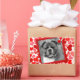 Cayendo corazones rosados rojos con una linda foto de boxeador en el marco.