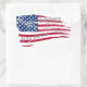 Ondular y angustiado gráfico de la bandera estadounidense con superposiciones de texto: "Libertad" "Libertad" "Igualdad" "Justicia"