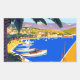 Anuncios de Viaje de Francia y Europa - Playa, pueblo, gente, árboles, mar azul y ilustracion cielo