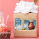 La vida clásica de antaño con racimo de uvas, rebanada de pan y una olla o jarra de terracota contra el fondo de columnas blancas de un antiguo templo romano y un cielo dramático. pegatina rectangular de personalizable. Puede cambiar o borrar el texto de la plantilla Paz sea en esta casa.