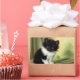 Pegatinas con un querido gatito de esmoquin! Este gatito blanco y negro posa con tacto sobre mantas verdes y rojas. ¡Un regalo maravilloso para los amantes del gato y del arte victoriano!