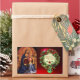 Diseño elegante, artístico y clásico, elaborado a partir de pintura vintage, con navidades florales coronados con cinta roja, mistletos y piedras de encina 3d. Obra maestra italiana de finales de la Edad Media de Beato Angelico, Florencia-Italia
