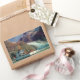 Pegatina Rectangular Vista de la montaña en Alaska con barco