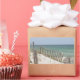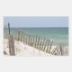 Dunas de arena y valla de playa con vistas al océano en la playa de Mayflower en Cape Cod