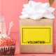 Etiqueta Yellow Blank Volunteer Name con el título en negrita negra sans serif font con espacio en blanco para tu nombre sobre fondo amarillo con borde negro. Perfecto para entrenador, tripulación, personal, grupo, equipo y más.