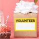 Etiqueta Yellow Blank Volunteer Name con el título en negrita negra sans serif font con espacio en blanco para tu nombre sobre fondo amarillo. Perfecto para entrenador, tripulación, personal, grupo, equipo y más.