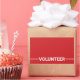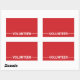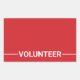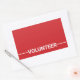 Etiqueta de nombre de voluntario en blanco rojo con título en negrita blanca sans serif fuente con espacio en blanco para tu nombre en fondo rojo. Perfecto para entrenador, tripulación, personal, grupo, equipo y más.