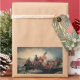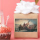 Ilustración vintage de viaje y diseño de transporte con una pintura de época victoriana de arte fino titulada Washington cruzando el Delaware, 1851. Del artista Emanuel Leutze. Conmemora el cruce del río Delaware helado por el general George Washington durante la Guerra de Independencia de los Estados Unidos con soldados militares que llevan la bandera estadounidense en la noche del 25 de diciembre de 1776. Esa acción histórica fue el primer movimiento en un ataque sorpresa contra las fuerzas de Hesse en Trenton, Nueva Jersey en la Batalla de Trenton. La bandera de los Estados Unidos de América en ese momento no era la actual de estrellas y barras que se muestra, la bandera históricamente precisa habría sido la Grand Union Flag, izada oficialmente por el propio Washington el 2 de enero de 1776.
