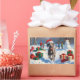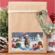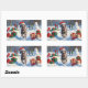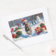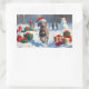 Pegatina Rectangular Weimaraner corre en Nieve con Gorra Navidad