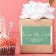 Whimsy Save the Date Pegatinas en verde y blanco con un diseño simple y divertido de tipografía de guiones. Estas últimas, que ahorran la fecha, los pegatinas son fáciles de personalizar con los detalles de su boda. Para obtener más opciones de personalización, haga clic en el botón Personalizar.