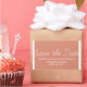 Whimsy Save the Date Pegatinas en naranja y blanco con un diseño simple y divertido de tipografía de guiones. Estas últimas, que ahorran la fecha, los pegatinas son fáciles de personalizar con los detalles de su boda. Para obtener más opciones de personalización, haga clic en el botón Personalizar.