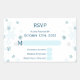 El diseño presenta copos de nieve azules de invierno con fondo blanco. Este RSVP fue hecho como una versión fácil de reposo y palo de nuestra clásica tarjeta RSVP de boda. Añádelo a su propia tarjeta, el reverso de su invitación a la boda, y más.
