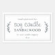 Etiqueta extra grande moderna, rústica y simple de vela de soja casera orgánica con el texto hecha con amor, vela de soja, tu aroma personalizado y el nombre de tu empresa en letra manuscrita elegante en negro claro y tipografía moderna sobre fondo blanco con un toque elegante de follaje rústico. Simplemente agrega tu información a la etiqueta y estarás listo para vender tus hermosas velas de soja artesanales hechas a mano. Diseñado exclusivamente para tu pequeño negocio por Happy Dolphin Studio. Si necesitas ayuda o productos coincidentes, por favor contáctanos en happydolphinstudio@outlook.com.